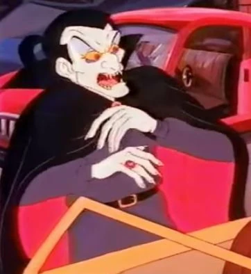Vampire learned that he and his cohorts were able to return to their former size after hearing an actress scream during a drive-in movie. Confident that he was now able to defeat Dr. Davenport's team, Vampire transformed into a bat and flew to Carrie Raven's house. There, the monsters captured Carrie and planned to enslave her. Just as Vampire went to hypnotize the young girl, the trio of villains shrank once again. Frustrated, Vampire decided to track down Raye-Faye, the actress from the film that allowed them to grow earlier.