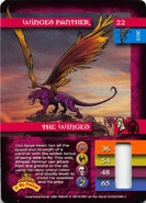 Winged Panther is in the class "The Winged." It is monster #22. It's depicted as a purple panther with large orange wings. It's trading card points is worth 203. His background photo is likely the Grand Canyon.